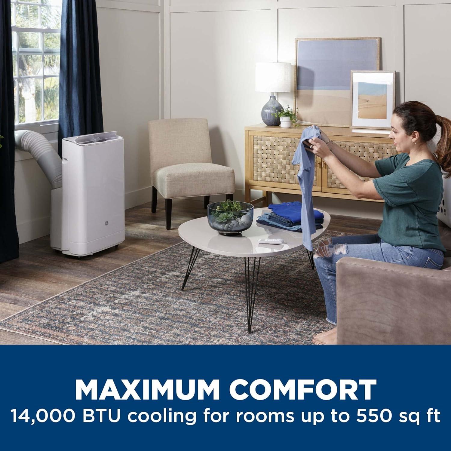 GE 8,000 BTU Portable Air Conditioner for Small Rooms up to 150 sq ft. (5,100 BTU SACC), 3-in-1 with Dehumidify, Fan and Auto Evaporation, Included Window Installation Kit(14000 BTU)