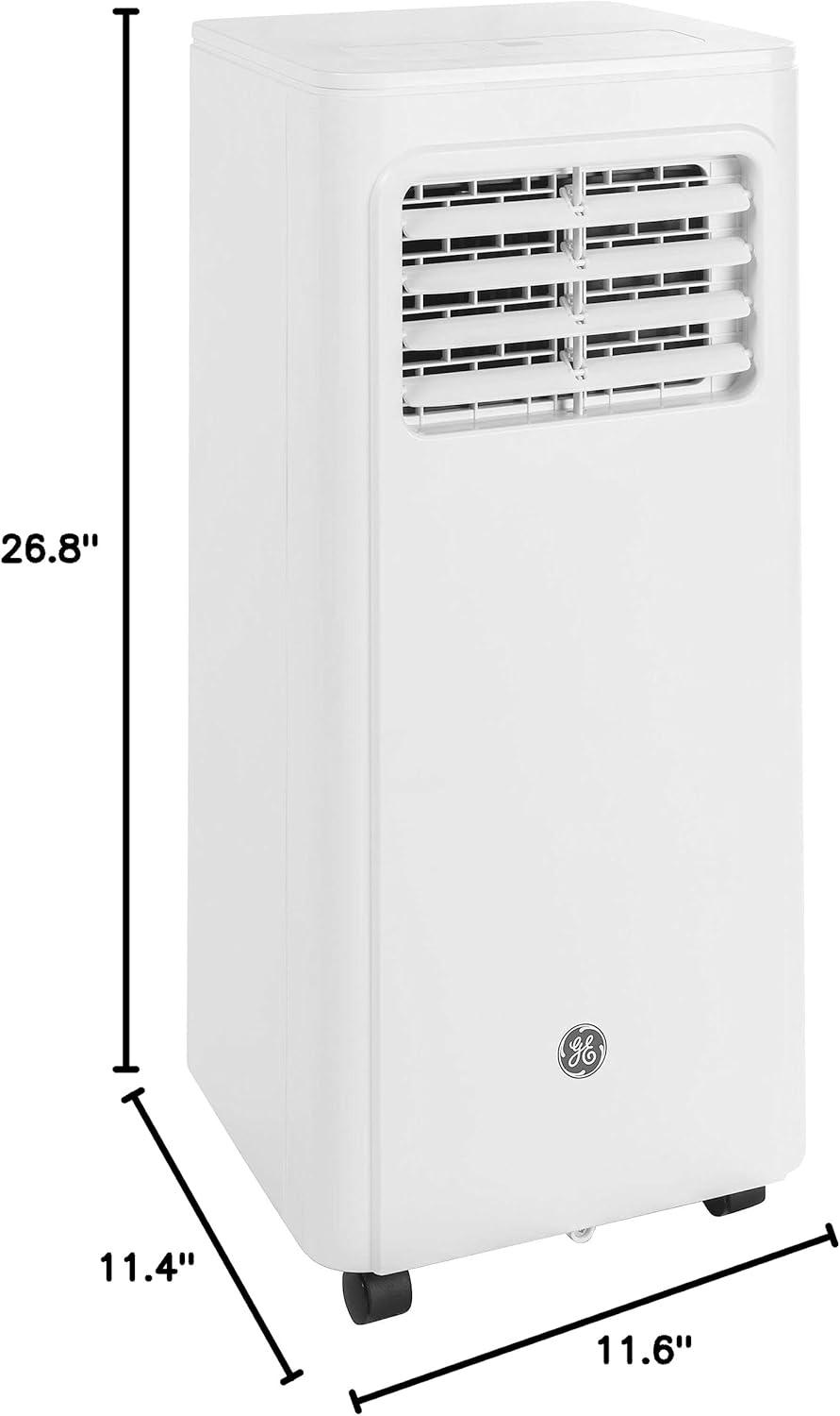 GE 8,000 BTU Portable Air Conditioner for Small Rooms up to 150 sq ft. (5,100 BTU SACC), 3-in-1 with Dehumidify, Fan and Auto Evaporation, Included Window Installation Kit(11000 BTU)