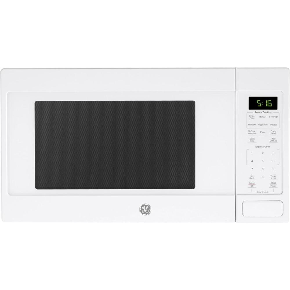 Heat leftovers and speed up cooking in your kitchen with this GE countertop microwave. Instant-on settings let you cook popcorn, vegetables and other foods with the touch of a single button, while weight and time defrost options make it easy to prepare meats for cooking. Featuring a large turntable, this GE countertop microwave delivers even, reliable heating for your dining and snacking needs.