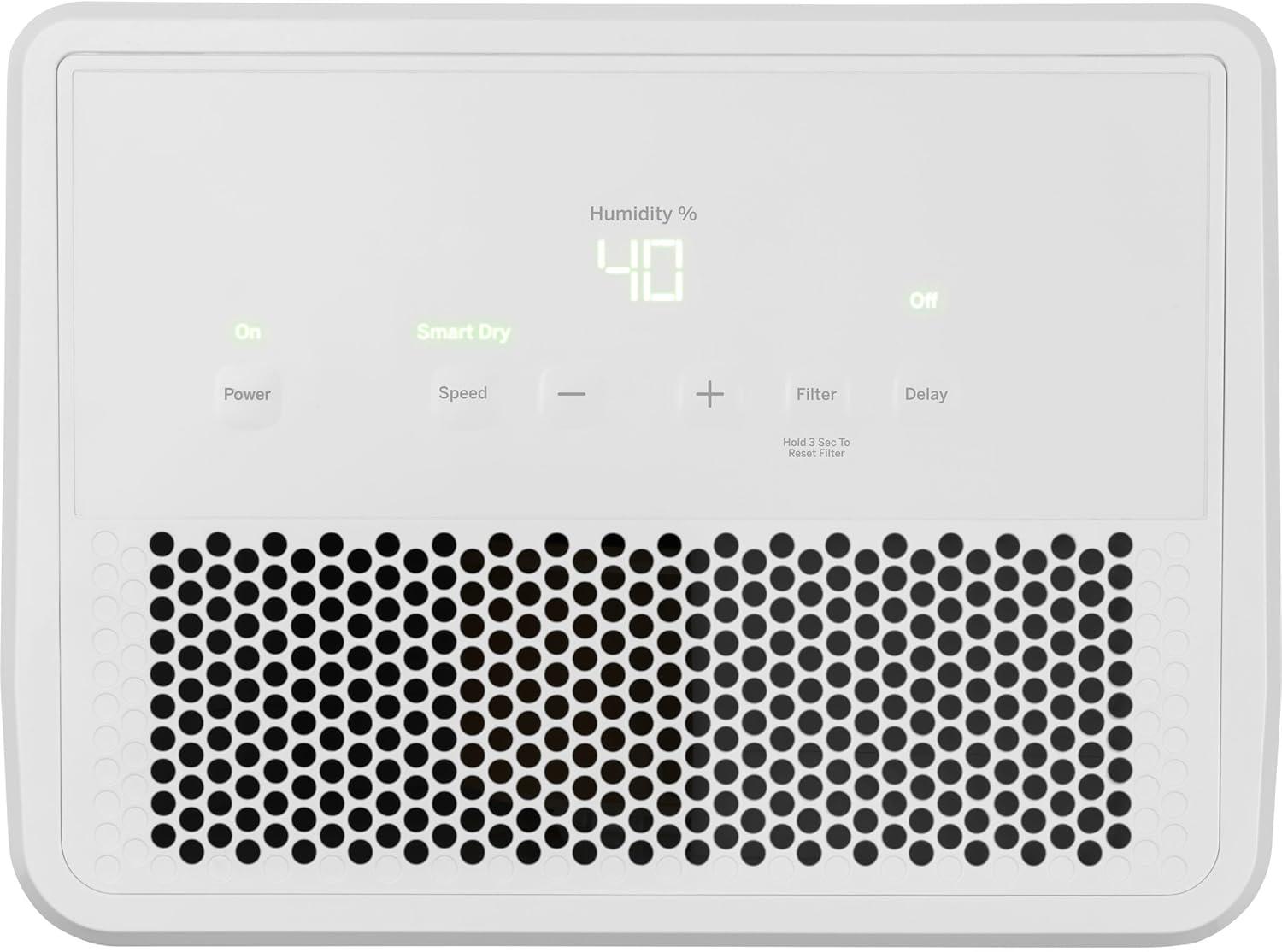 GE Portable Dehumidifier, 50 Pint Daily Output with Smart Dry for Wet Spaces, Drain Hose for Auto or Manual Drainage, Ultra Quiet, Perfect for Basement, Bedroom, Bathrooms, White(25 Pint)