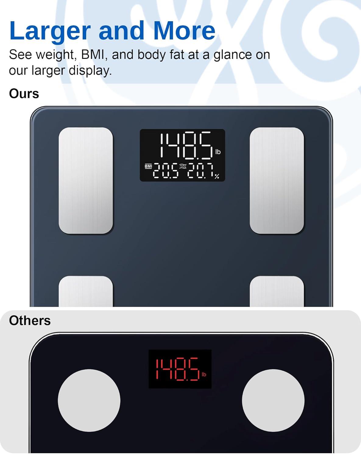 Instant On-Scale Results – See Weight, BMI & Body Fat Immediately: Step on the scale and get three essential body metrics displayed right on the bright LED screen—no phone needed after initial setup. Instantly view accurate measurements of your weight, BMI, and body fat percentage with every weigh-in. Designed for convenience and clarity, the large, high-contrast digits are easy to read in any lighting, making it perfect for daily use and quick health feedback
