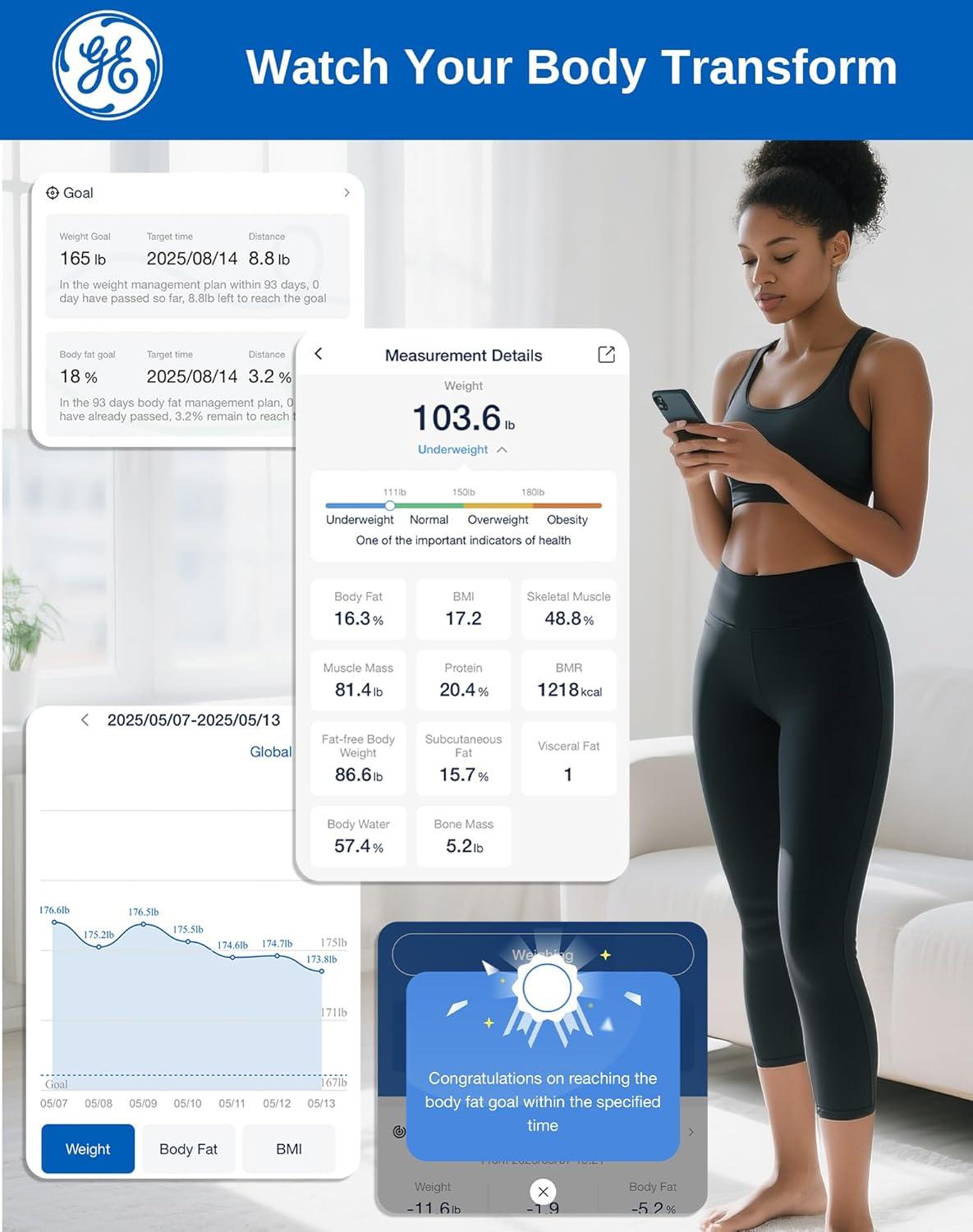 13+ Body Composition Metrics – Comprehensive Health Analysis & Tracking: Sync via Bluetooth to unlock detailed body composition analysis through advanced bio-impedance technology. Our smart scale measures muscle mass, body water, protein percentage and metabolic age, providing valuable insights for your fitness journey. Track trends and progress with in-depth analysis perfect for gym enthusiasts and health-conscious people