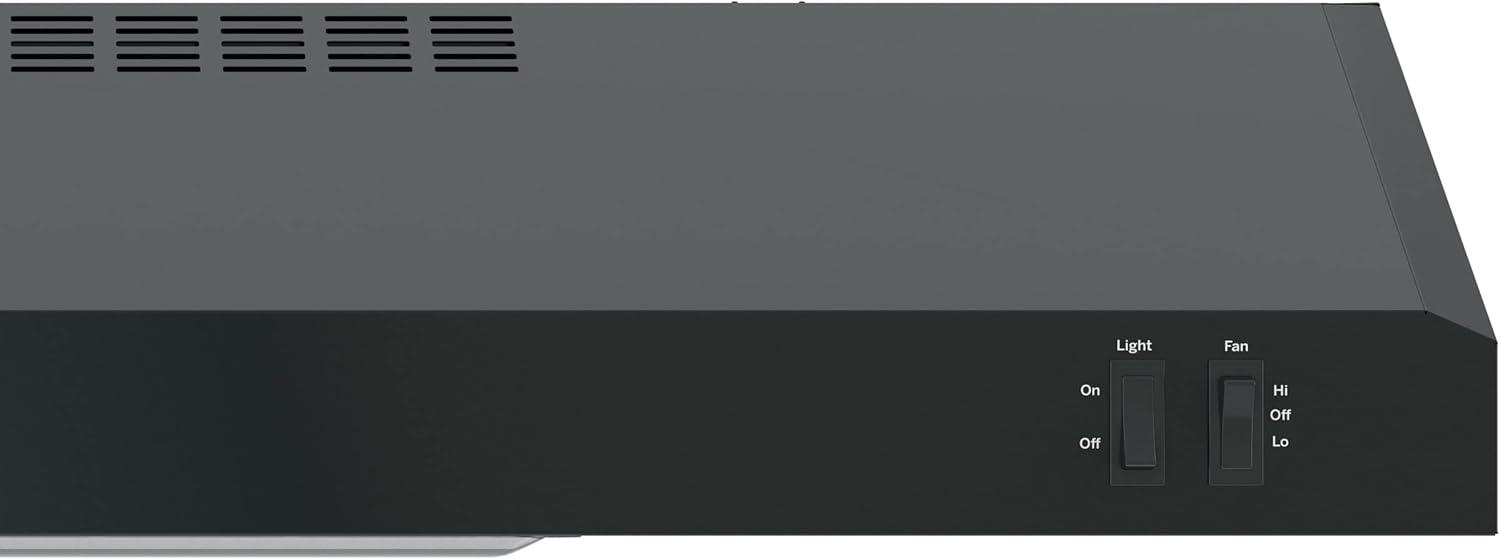 At GE Appliances, we bring good things to life. Our goal is to help people improve their lives at home by providing quality appliances that were made for real life. Whether it's enjoying the tradition of making meals from scratch or tackling a mountain of muddy jeans and soccer jerseys, GE Appliances are crafted to support any and every task in the home. The GE 30 Inch Under Cabinet Range Hood provides a sleek and high-quality solution to removing smoke, grease, odors and moisture from your cooking space. This vent hood has two speeds and includes convertible venting options of recirculating or external venting. Illuminate your cooking space and surrounding surfaces with the included cooktop light bulbs. Choose from exhausts options at the top or rear of the hood. You'll enjoy the convenience of a dishwasher safe charcoal filter to be reused through many uses of your appliance. With front controls and partially enclosed bottom, you can easily access all features of your range hood. This range hood product comes in black, stainless steel, white and slate, ensuring it matches your existing appliances.