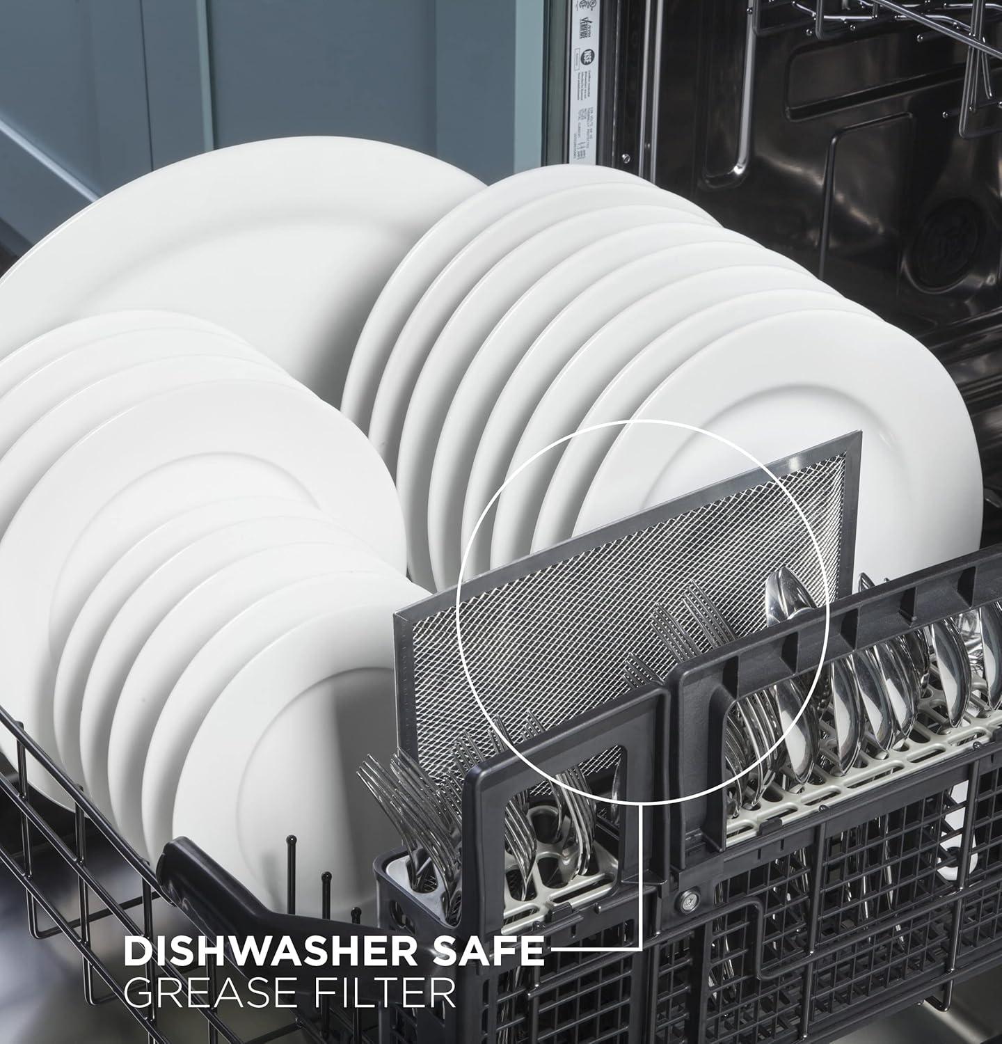 DISHWASHER SAFE CHARCOAL FILTER – Included filter (JXCF53) filters grease and is dishwasher-safe