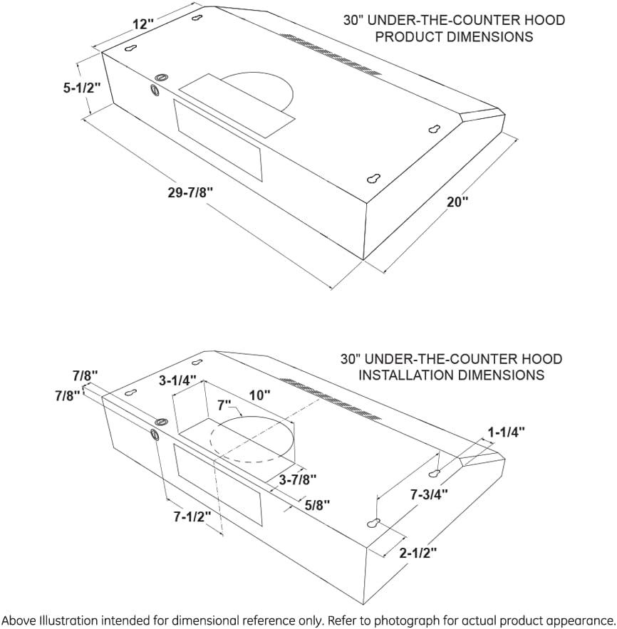 At GE Appliances, we bring good things to life. Our goal is to help people improve their lives at home by providing quality appliances that were made for real life. Whether it's enjoying the tradition of making meals from scratch or tackling a mountain of muddy jeans and soccer jerseys, GE Appliances are crafted to support any and every task in the home. The GE 30 Inch Under Cabinet Range Hood provides a sleek and high-quality solution to removing smoke, grease, odors and moisture from your cooking space. This vent hood has two speeds and includes convertible venting options of recirculating or external venting. Illuminate your cooking space and surrounding surfaces with the included cooktop light bulbs. Choose from exhausts options at the top or rear of the hood. You'll enjoy the convenience of a dishwasher safe charcoal filter to be reused through many uses of your appliance. With front controls and partially enclosed bottom, you can easily access all features of your range hood. This range hood product comes in black, stainless steel, white and slate, ensuring it matches your existing appliances.