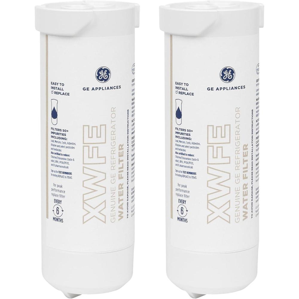 GE Appliances genuine water filters are certified to NSF/ANSI Drinking Water Treatment standards to improve the quality of your home water. Imitation or counterfeit water filters can damage your water filter system and aren’t guaranteed to reduce the impurities in your water. Genuine GE water replacement filter, XWFE, reduces select pharmaceuticals, including ibuprofen, progesterone, atenolol, trimethoprim & fluoxetine.* (*Impurities not necessarily in all users’ water).